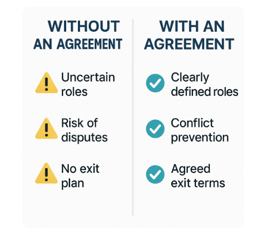 Column 1: “Without an Agreement” → Confusion, Disputes, Legal Risk